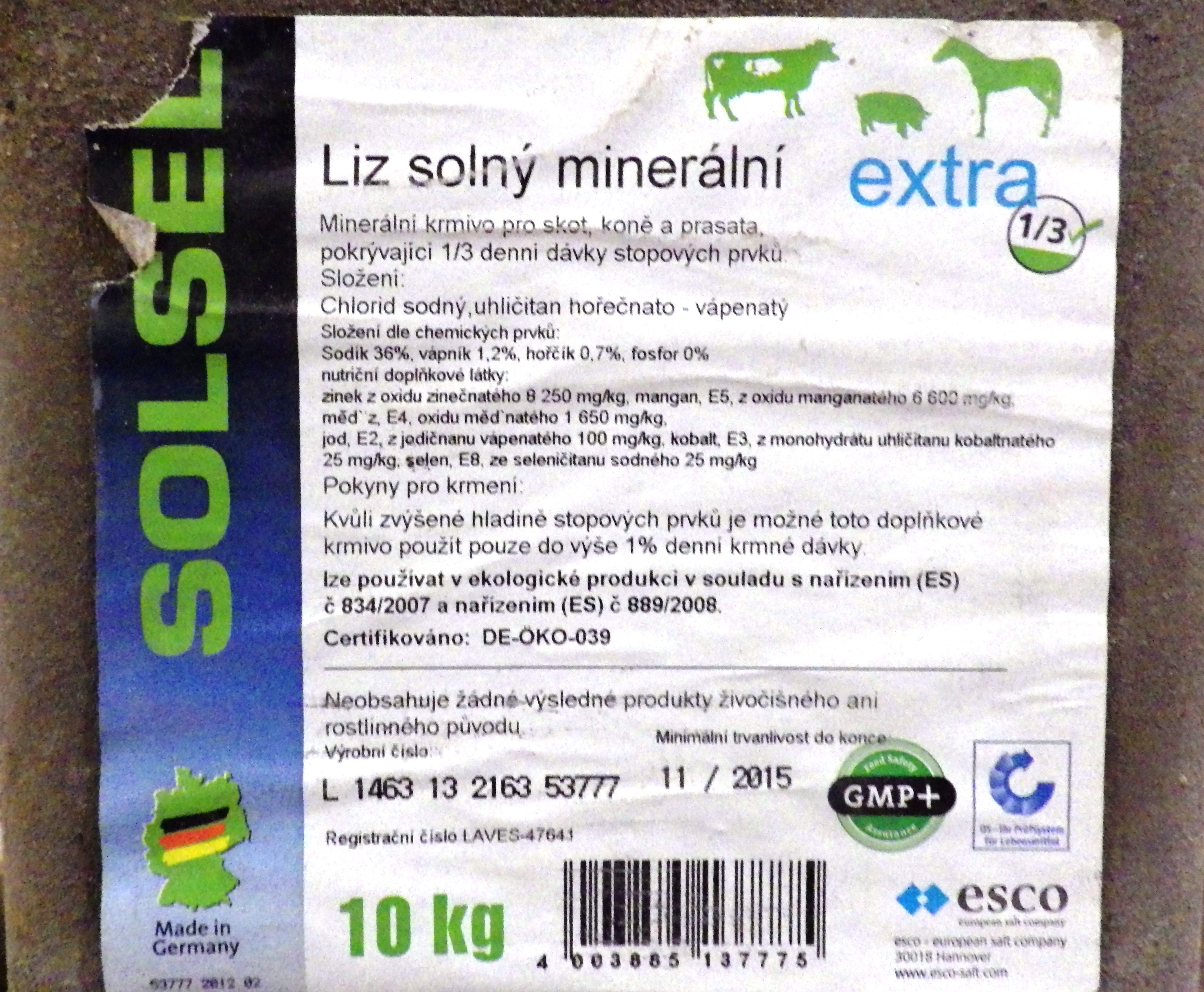 Solný minerální liz Solsel Extra pro koně a dobytek 10 kg. Schváleno pro využití v ekologickém zemědělství (certifikát lze zaslat e-mailem).